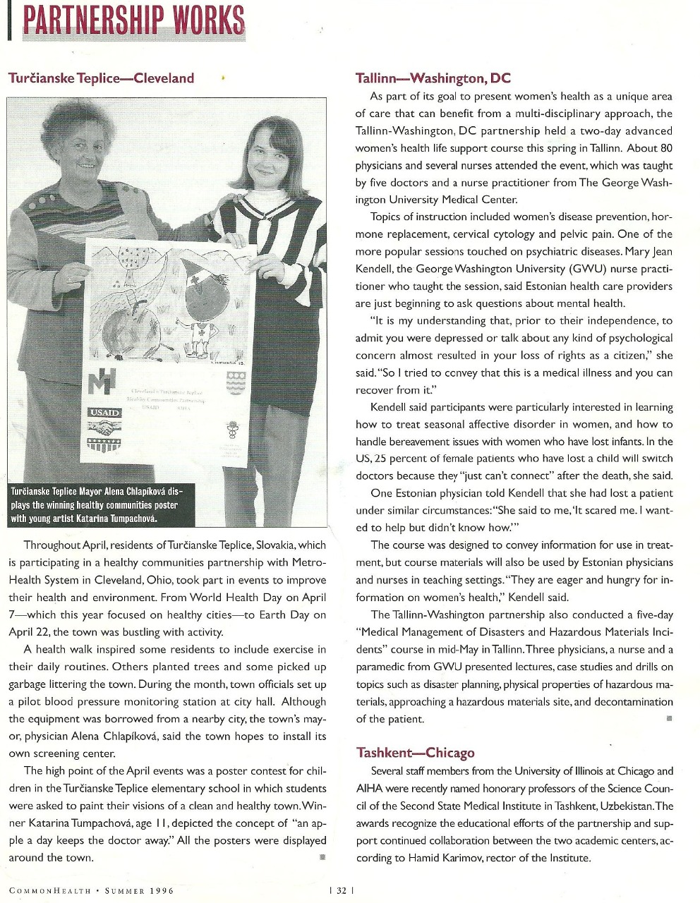 medzinárodnej súťaže na zdravotnú tematiku, ktorú som vyhrala. Dodnes si odkladám článok a fotografiu s primátorkou v prestížnom časopise Common Health.